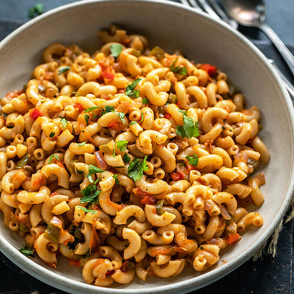Pour 6 personnes Temps depréparation : 10min Temps de cuisson : 25 min Difficulté: Débutante Type deplat : Pâtes / Végétarien Ingrédients : Consigne de préparation Pelez et hachez l’oignon, lavez et découpez en petits les poivrons, lepiment et les tomates. Faites de même pour la coriandre Préparation Conseils Extra Vous pouvez également ajouter 1 cuillère à caféd’origan séché ou de thym stade ou même du fromage râpé si vous le souhaitez.