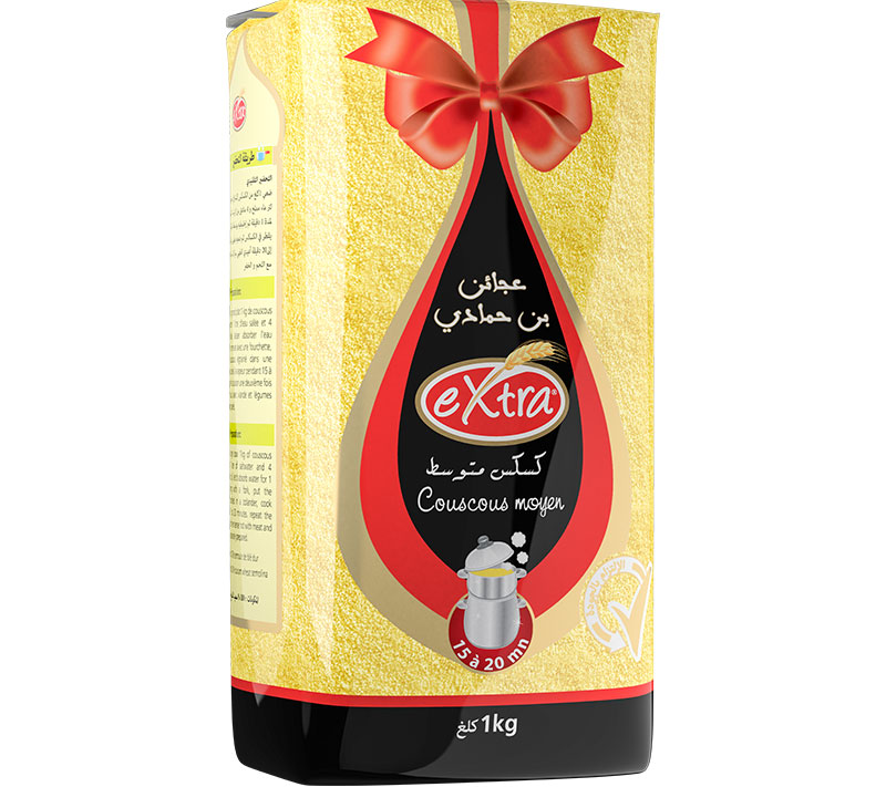 Découvrez notre couscous moyen, élaboré à partir de 100 % de semoule de blé dur pour garantir un goût authentique et une texture parfaite.